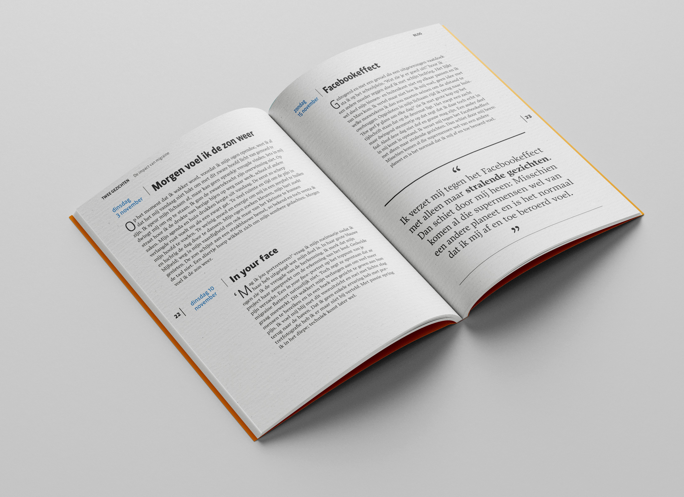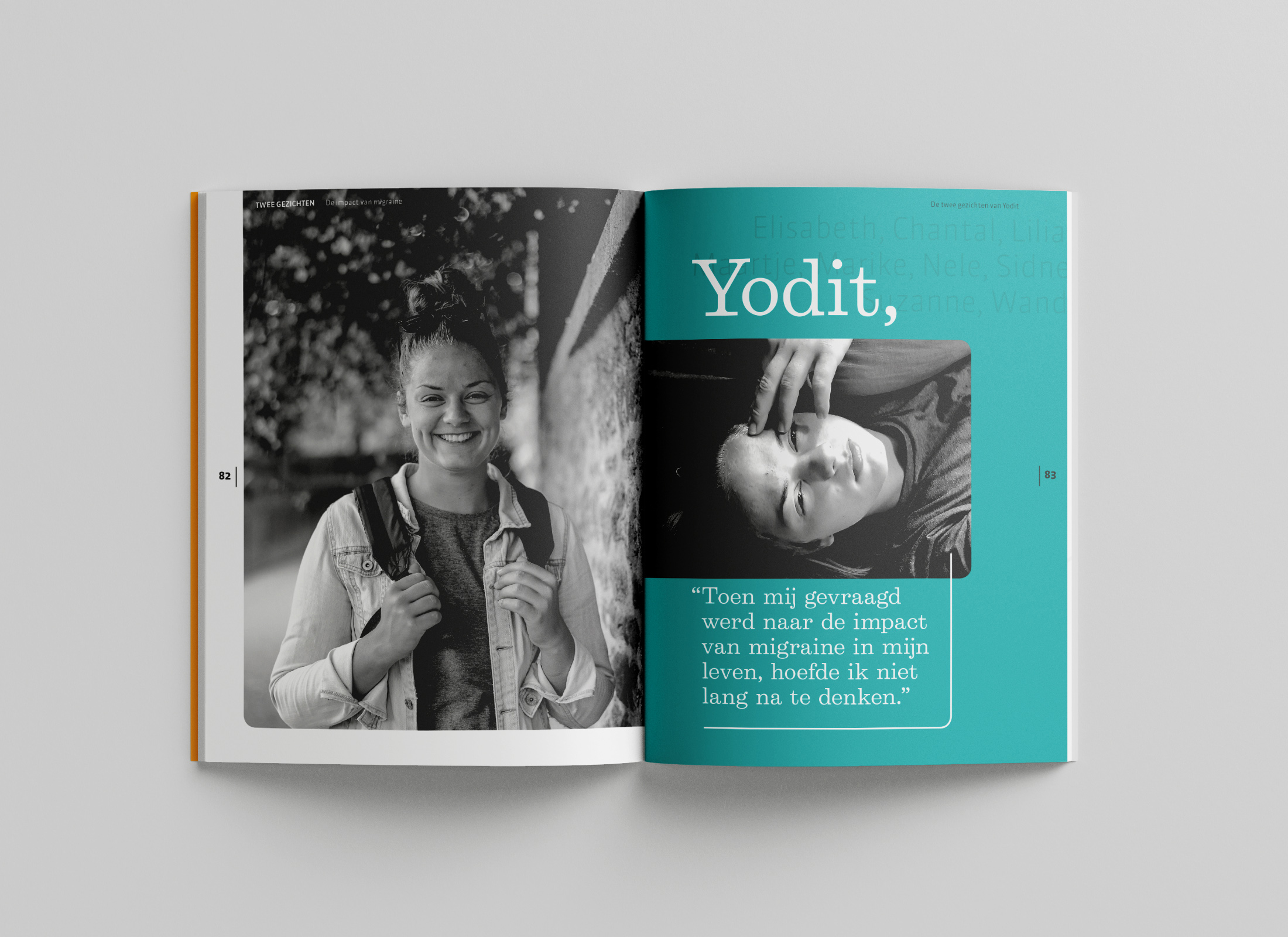 De geïnterviewde mocht vervolgens zelf een foto maken tijdens een aanval. Door het contrast tussen deze foto’s, aangevuld met een persoonlijk verhaal, wordt de impact van migraine pijnlijk duidelijk.